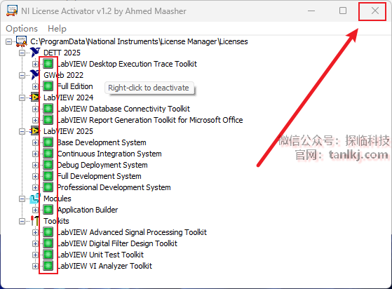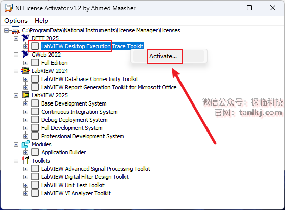 右键【LabVIEW Desktop Execution Trace Toolkit】,点击【Activate…】。