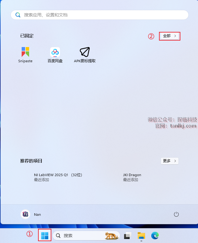 ①点击【开始】图标;