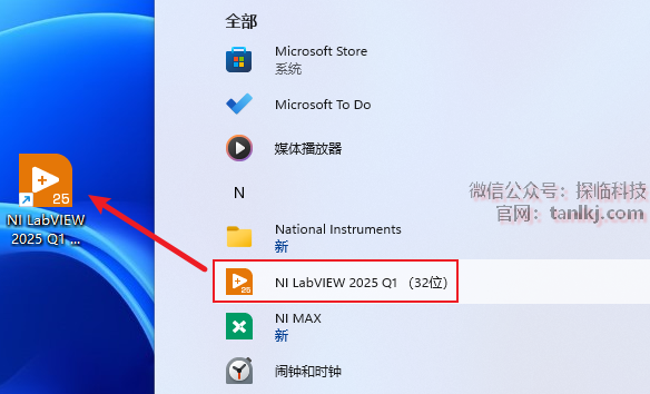 找到软件【NI LabVIEW 2025】,并将其拖至桌面创建桌面快捷方式。