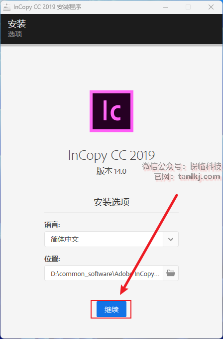 更改软件默认的安装位置,如不需更改,直接点击【继续】即可。