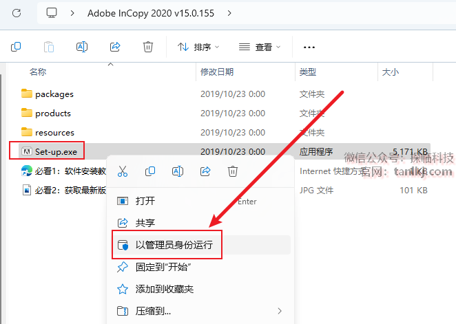 打开解压后的文件夹,右键安装程序【Set-up】,点击【以管理员身份运行】。