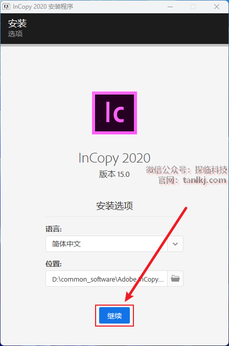 更改软件默认的安装位置,如不需更改,直接点击【继续】即可。