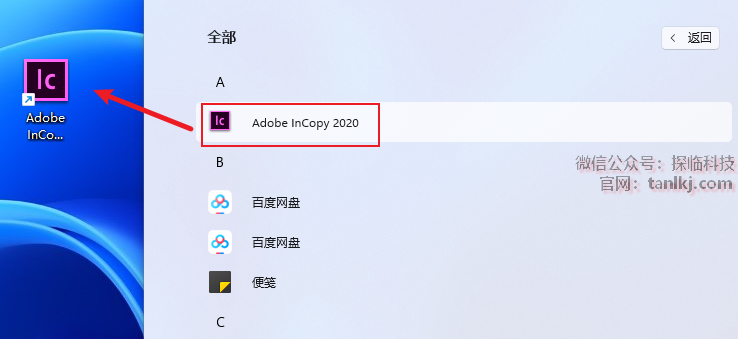 找到软件【Adobe InCopy 2020】,将其拖至桌面创建快捷方式。