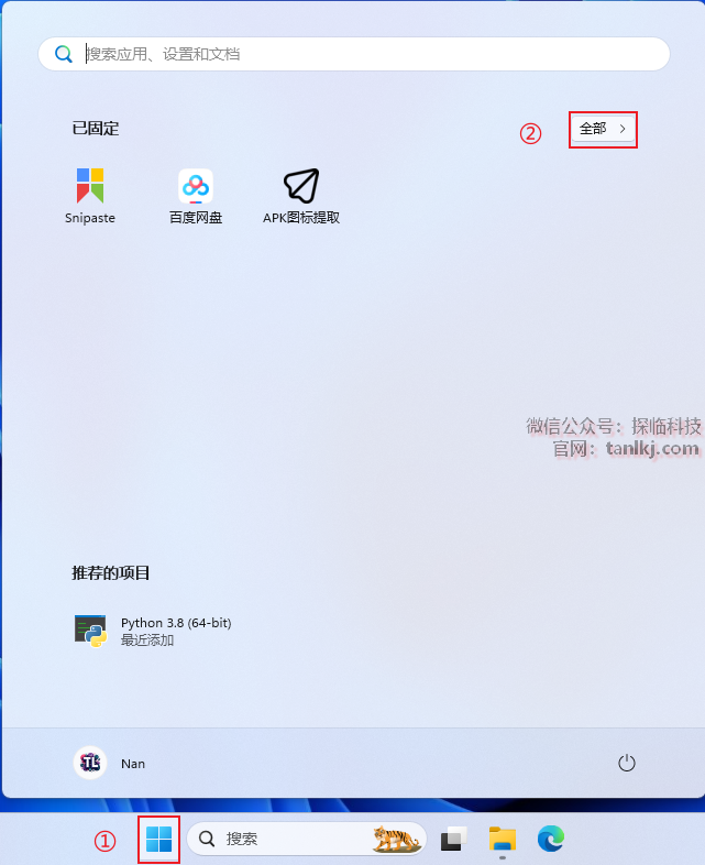 ①点击【开始】图标;