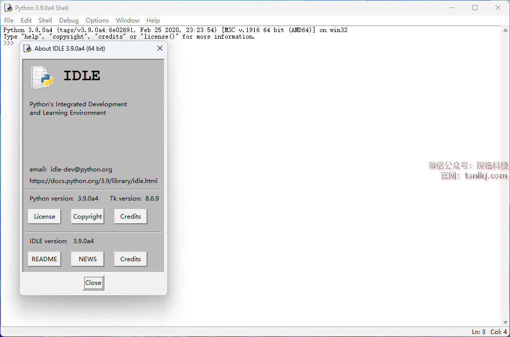 在桌面,双击运行软件【IDLE(Python 3.9 64-bit)】。