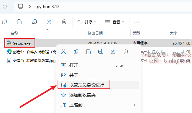 打开解压后的文件夹,右键程序【Setup】,点击【以管理员身份运行】。