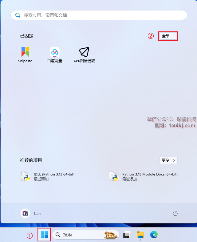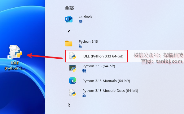 找到软件【IDLE(Python 3.13 64-bit)】,并将其拖至桌面创建快捷方式。