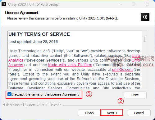 ①勾选【I accept the terms of the License Agreement】;