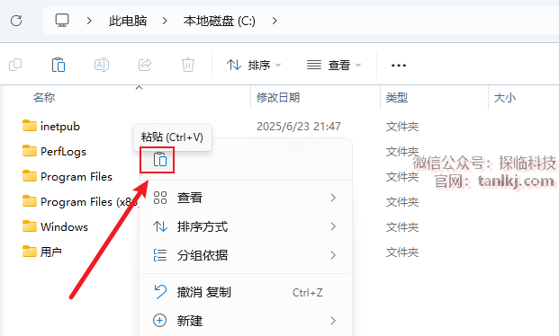 打开电脑c盘,粘贴刚刚复制的文件。