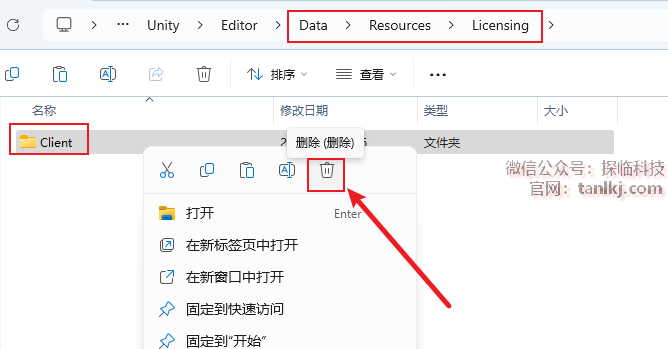 在弹出来的文件夹中,依次打开文件夹【Data】-【Resources】-【Licensing】,双击文件【Client】。