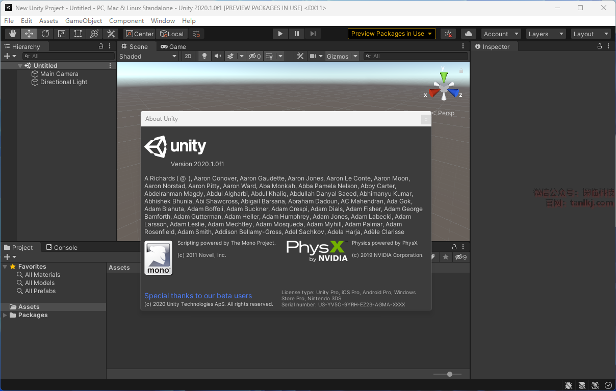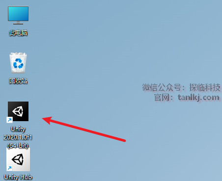 在桌面,双击运行软件【Unity 2020.1.0…】。