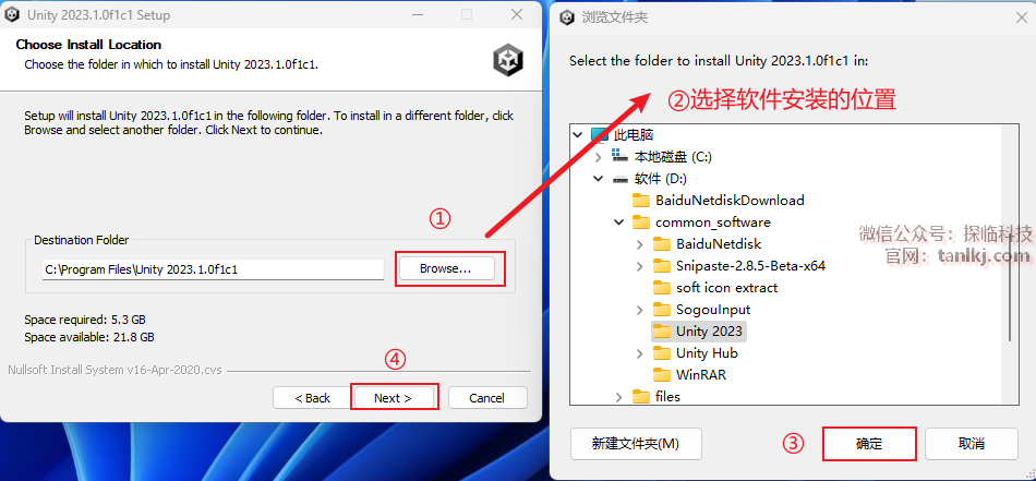 ②选择软件安装的位置,安装路径中不能包含任何中文字符;