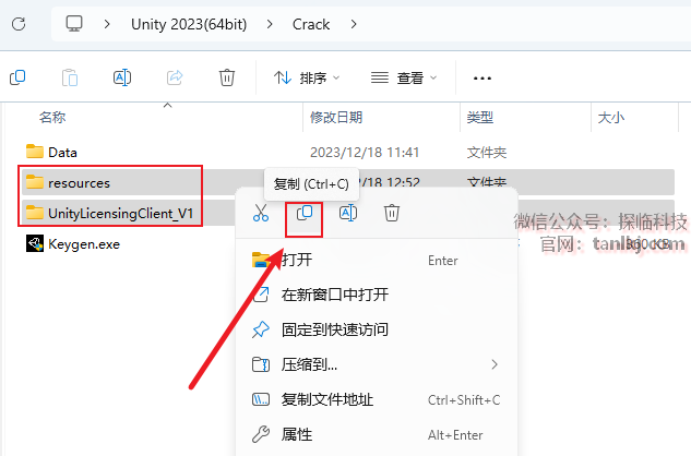 复制文件【resources】和【UnityLicensingClient_V1】。