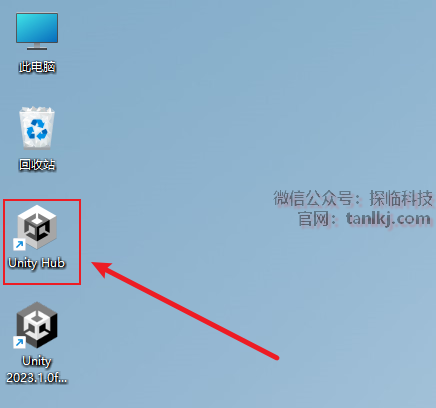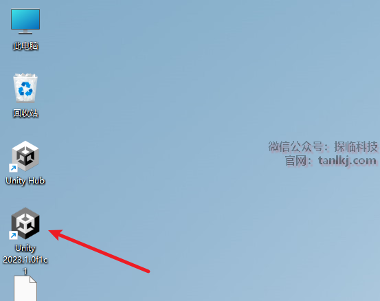 在桌面,双击运行软件【Unity 2023.1.0…】。