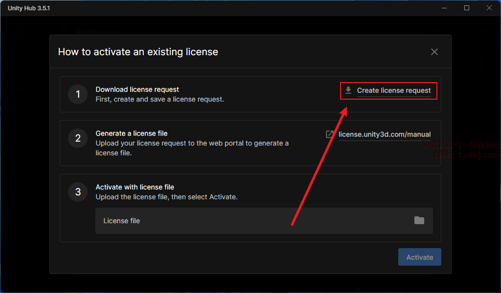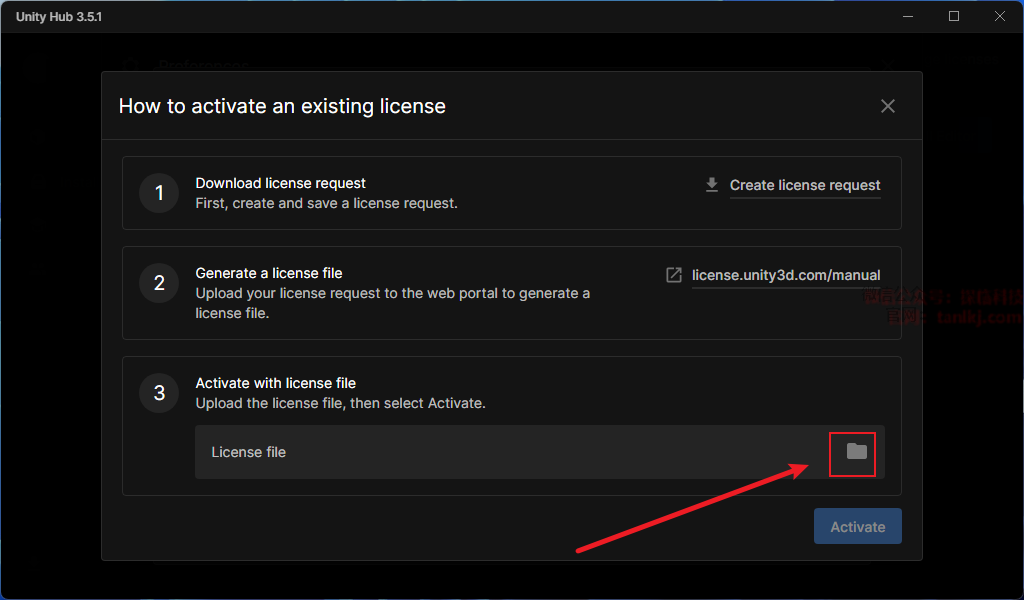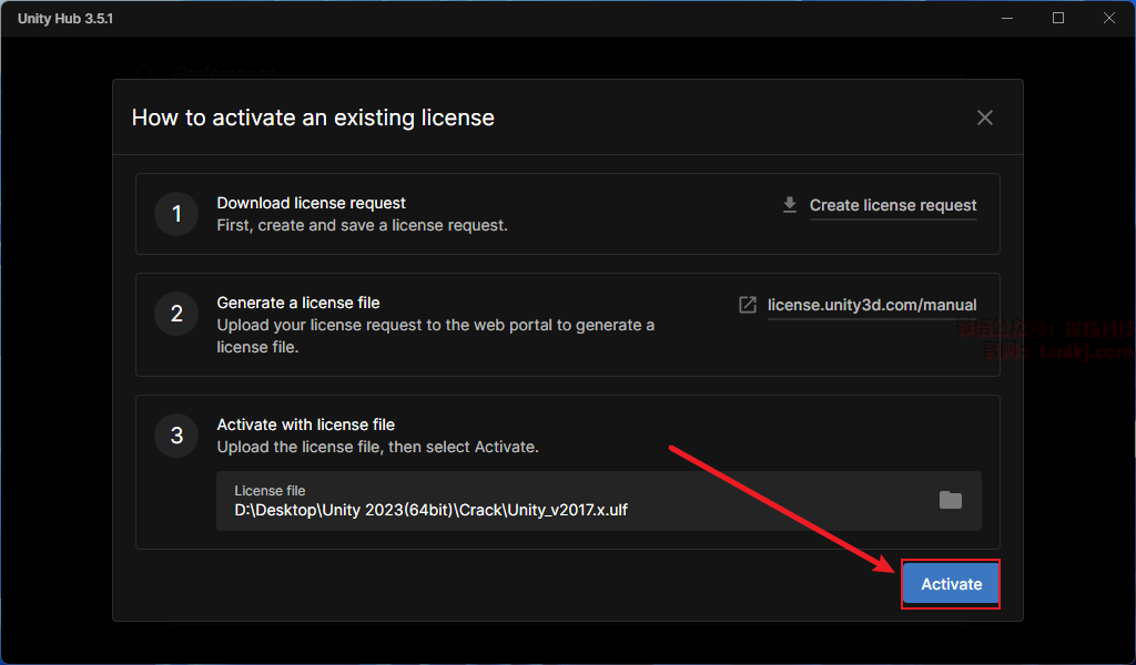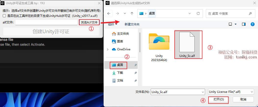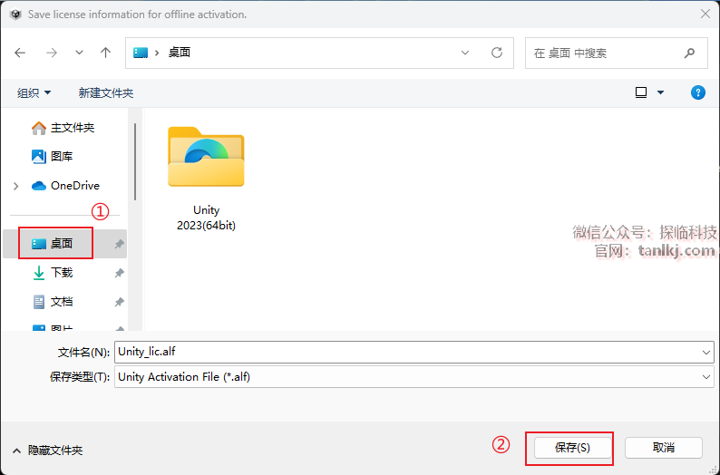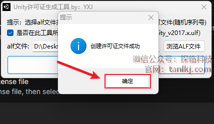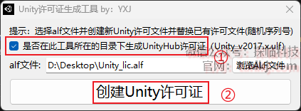 ①勾选【是否在此工具所在的目录下生成UnityHub许可证】;