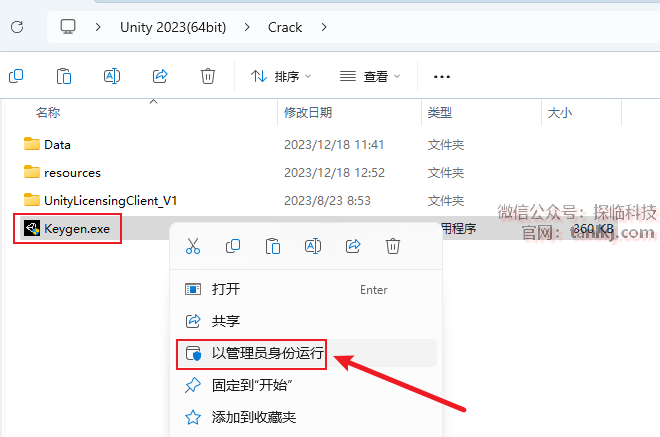 回到【Crack】文件夹中,右键程序【Keygen】,点击【以管理员身份运行】。
