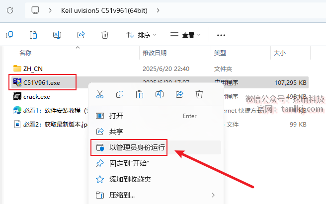 打开解压后的文件夹,右键程序【C51V961】,点击【以管理员身份运行】。