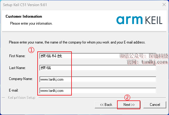 ①填写【First Name】、【Last Name】、【Company Name】、【E-mail】(可随意填写);