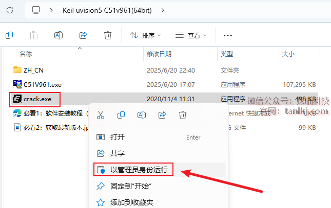 回到之前解压后的文件夹中,右键程序【crack】,点击【以管理员身份运行】。
