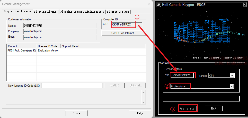 ①复制生成的激活码至指定框中;