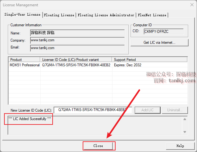 提示激活成功后,点击【Close】。
