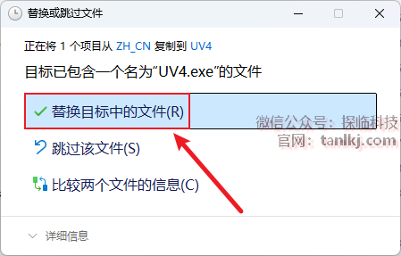 点击【替换目标中的文件】。