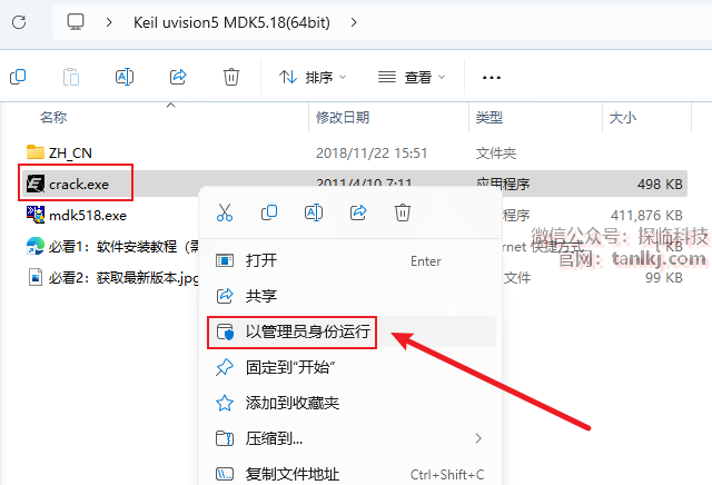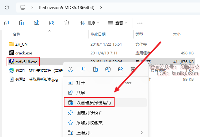 打开解压后的文件夹,右键程序【mdk518】,点击【以管理员身份运行】。