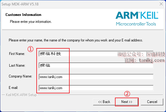 ①填写【First Name】、【Last Name】、【Company Name】、【E-mail】(可随意填写);
