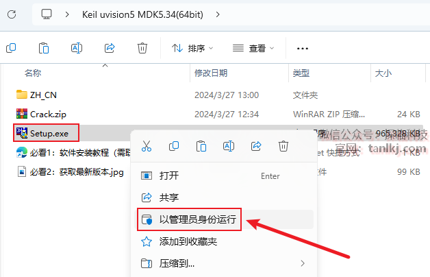 打开解压后的文件夹,右键程序【Setup】,点击【以管理员身份运行】。