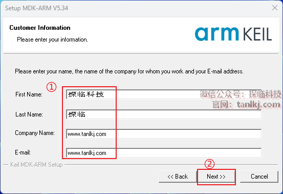 ①填写【First Name】、【Last Name】、【Company Name】、【E-mail】(可随意填写);
