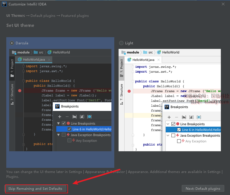 点击【Skip Remaining and Set Defaults】。