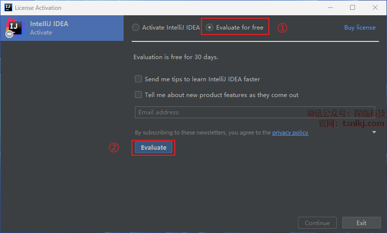 ①勾选【Evaluate for free】;