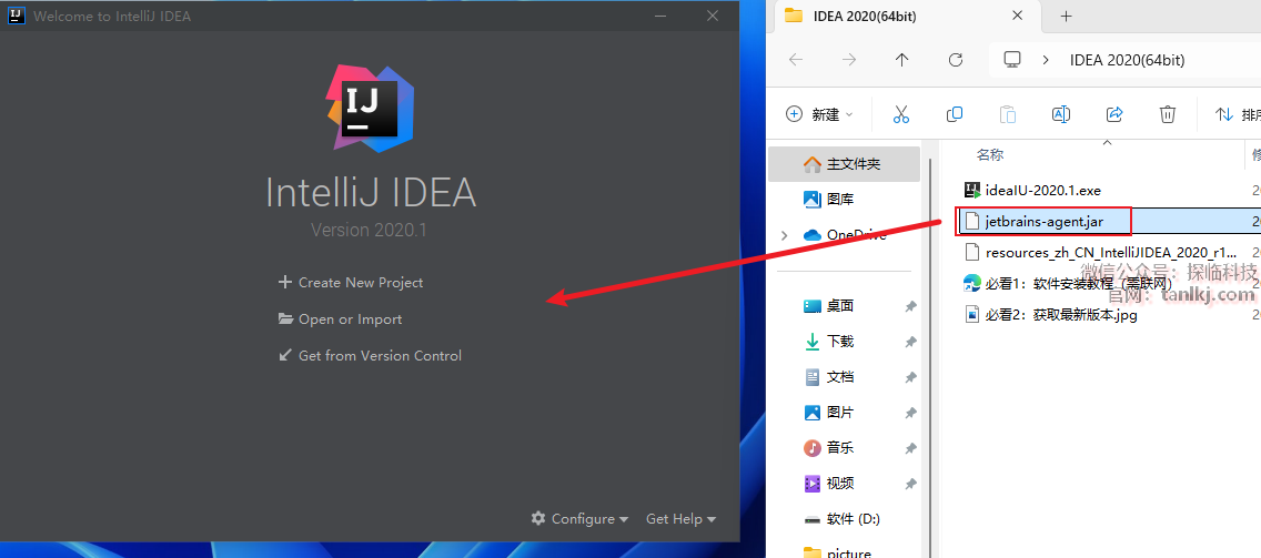 回到之前解压后的文件夹中,将文件【jetbrains-agent】拖进软件中。