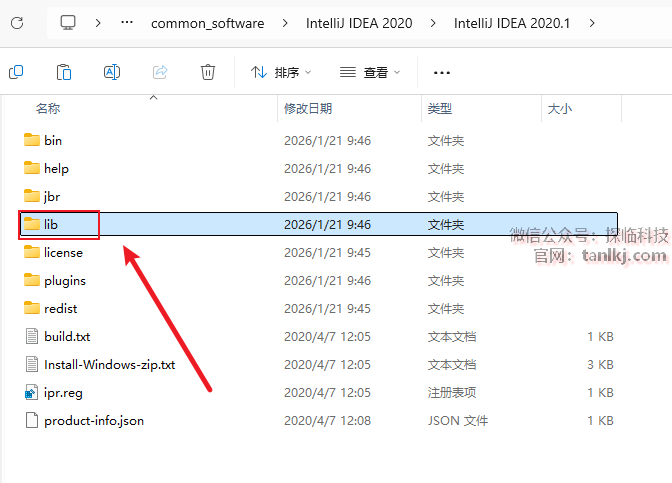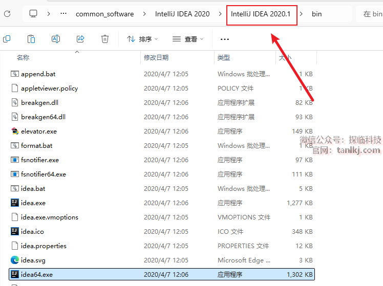 在弹出来的文件夹中,点击地址栏中的【IntelliJ IDEA 2020.1】。
