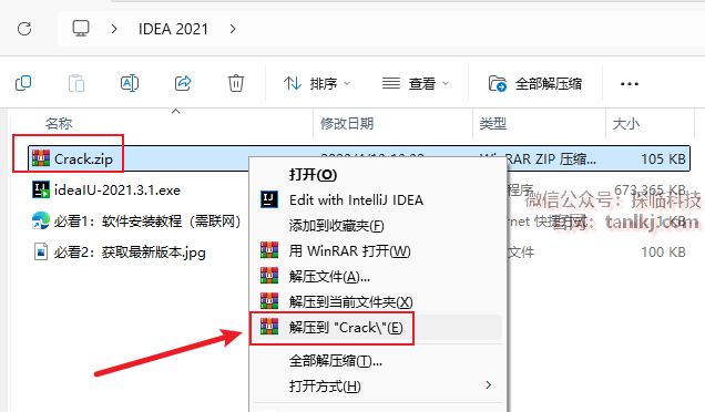 回到之前解压后的文件夹中,解压文件【Crack】。