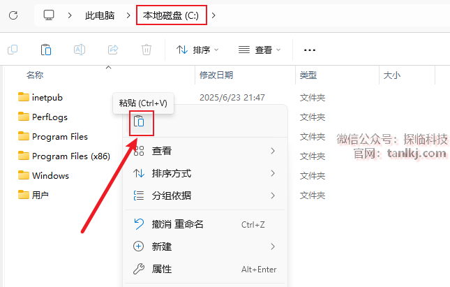 打开电脑C盘,粘贴刚刚复制的文件。