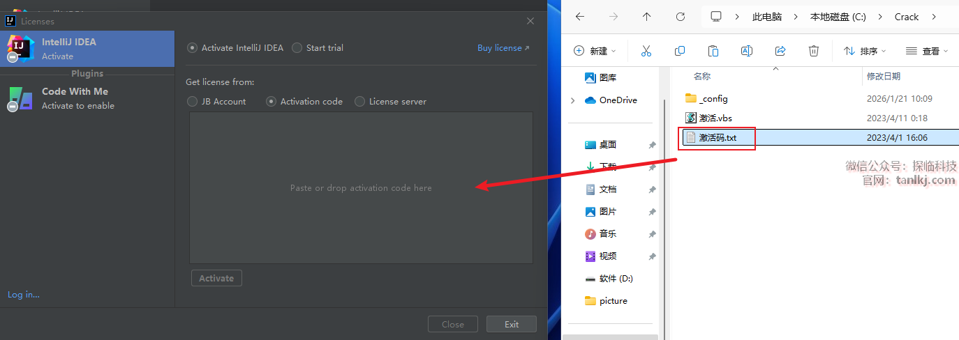 回到C盘中的【Crack】文件夹中,将文件【激活码】拖至软件中。