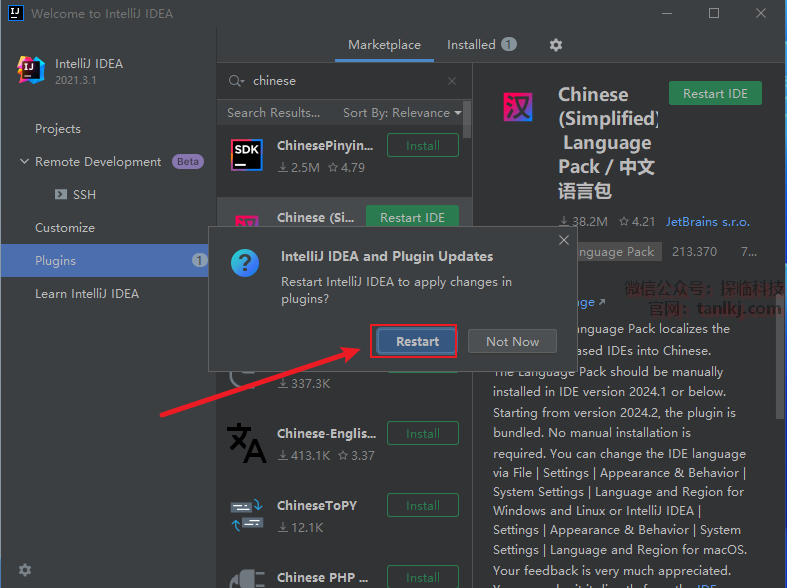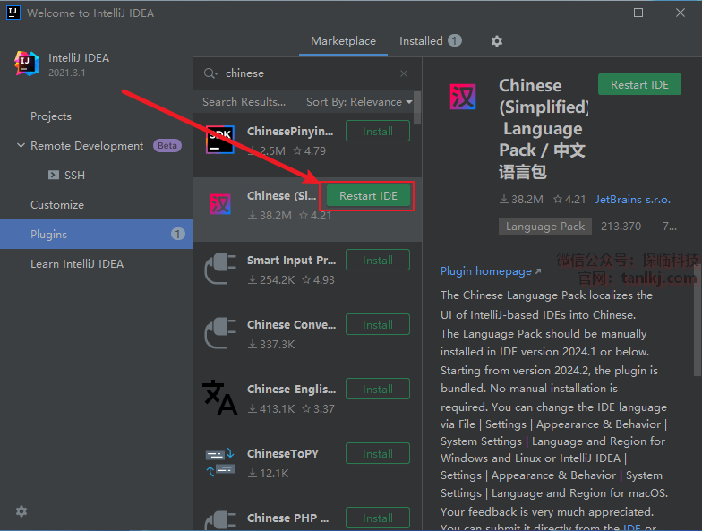 点击【Restart IDE】。