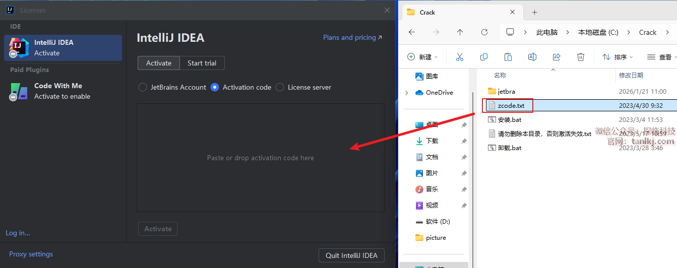 回到C盘中的【Crack】文件夹中,将文件【zcode】拖至软件中。