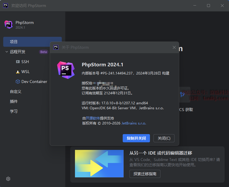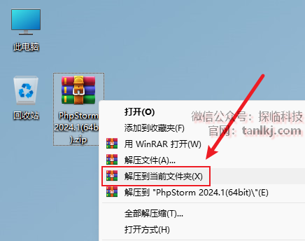 打开解压后的文件夹,右键程序【PhpStorm-2024.1】,点击【以管理员身份运行】。