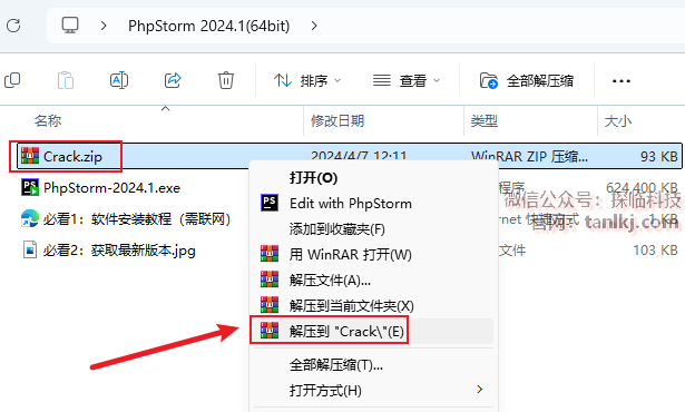 回到之前解压后的文件夹中,解压文件【Crack】。