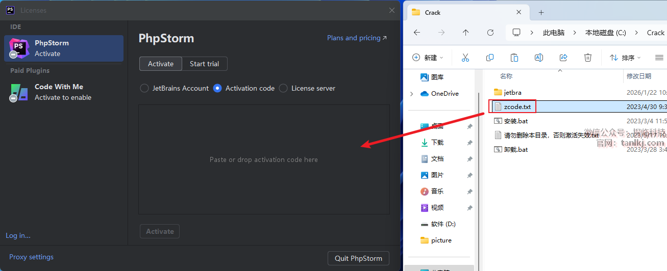 回到C盘中的【Crack】文件夹中,将文件【zcode】拖至软件中。