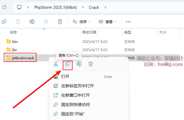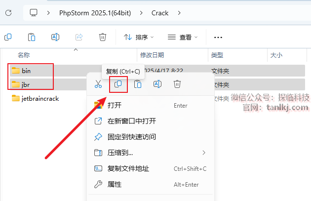 回到【Crack】文件夹中,复制文件【bin】和【jbr】。