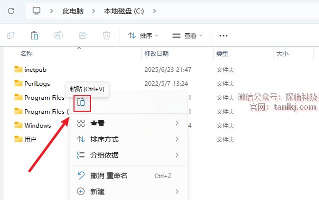 打开电脑C盘,粘贴刚刚复制的文件。
