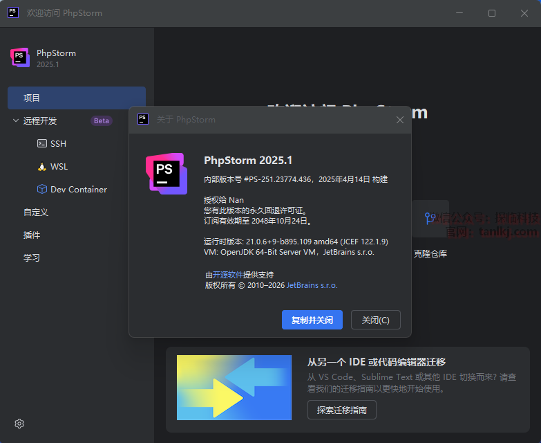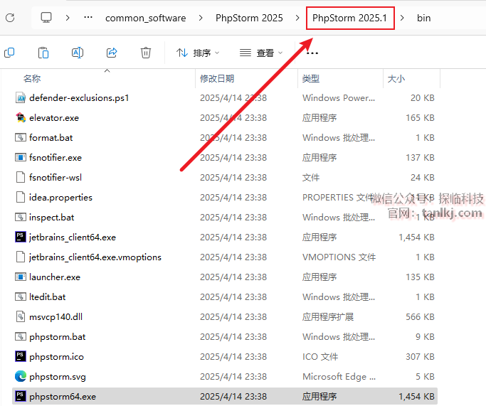 点击上方地址栏中的【PhpStorm 2025.1】。
