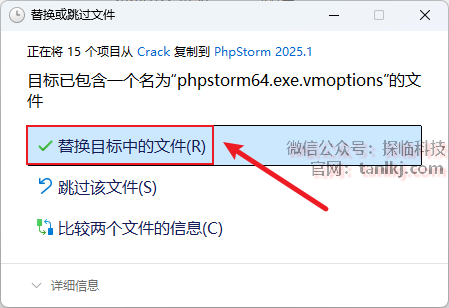 点击【替换目标中的文件】。