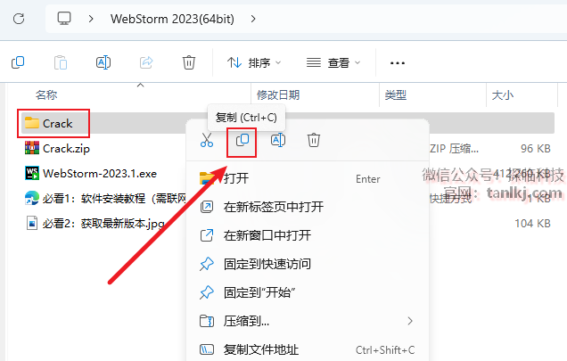 复制刚刚解压后的文件夹【Crack】。