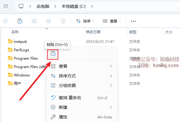打开电脑C盘,粘贴刚刚复制的文件。
