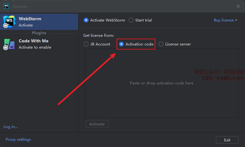 勾选【Activation code】。
