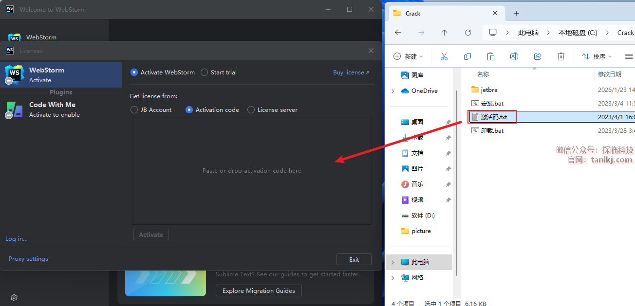 回到C盘中的【Crack】文件夹中,将文件【激活码】拖至软件中。